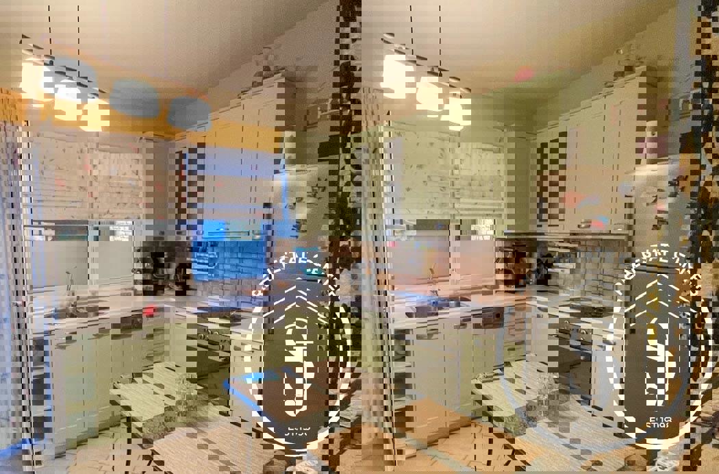 Wonderful villa for sale in the heart of Pefkohori, just 70 meters from the beautiful sandy beach! This spacious 112 m² villa features 4 bedrooms, 3 bathrooms, a modern kitchen, and a comfortable living area with direct access to a large 40 m² patio—perfect for outdoor living and entertaining.