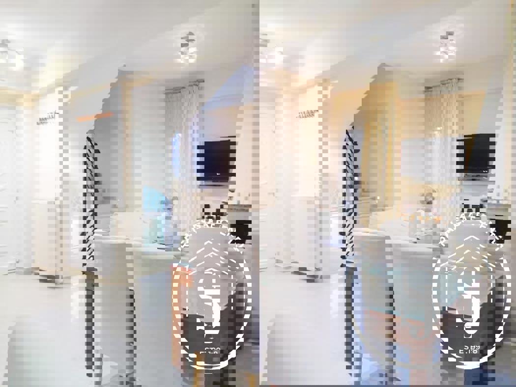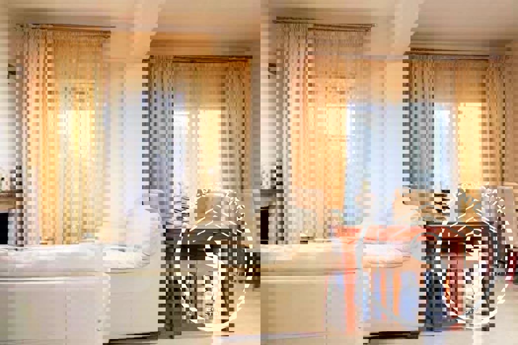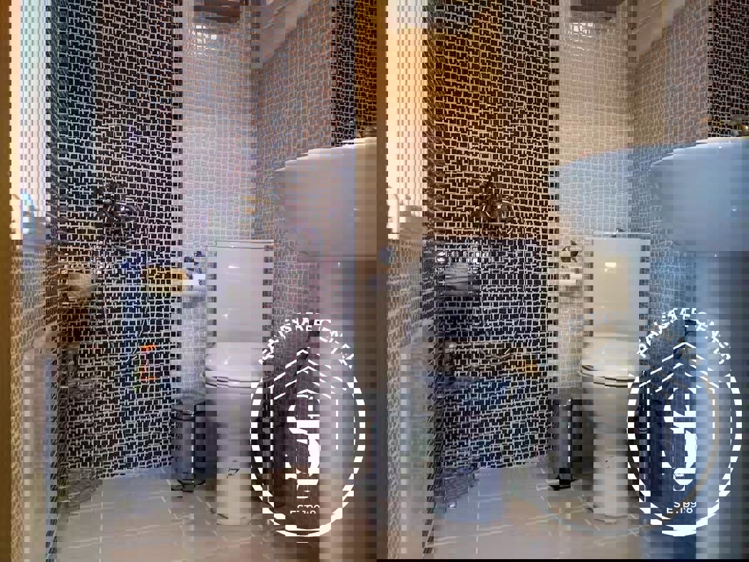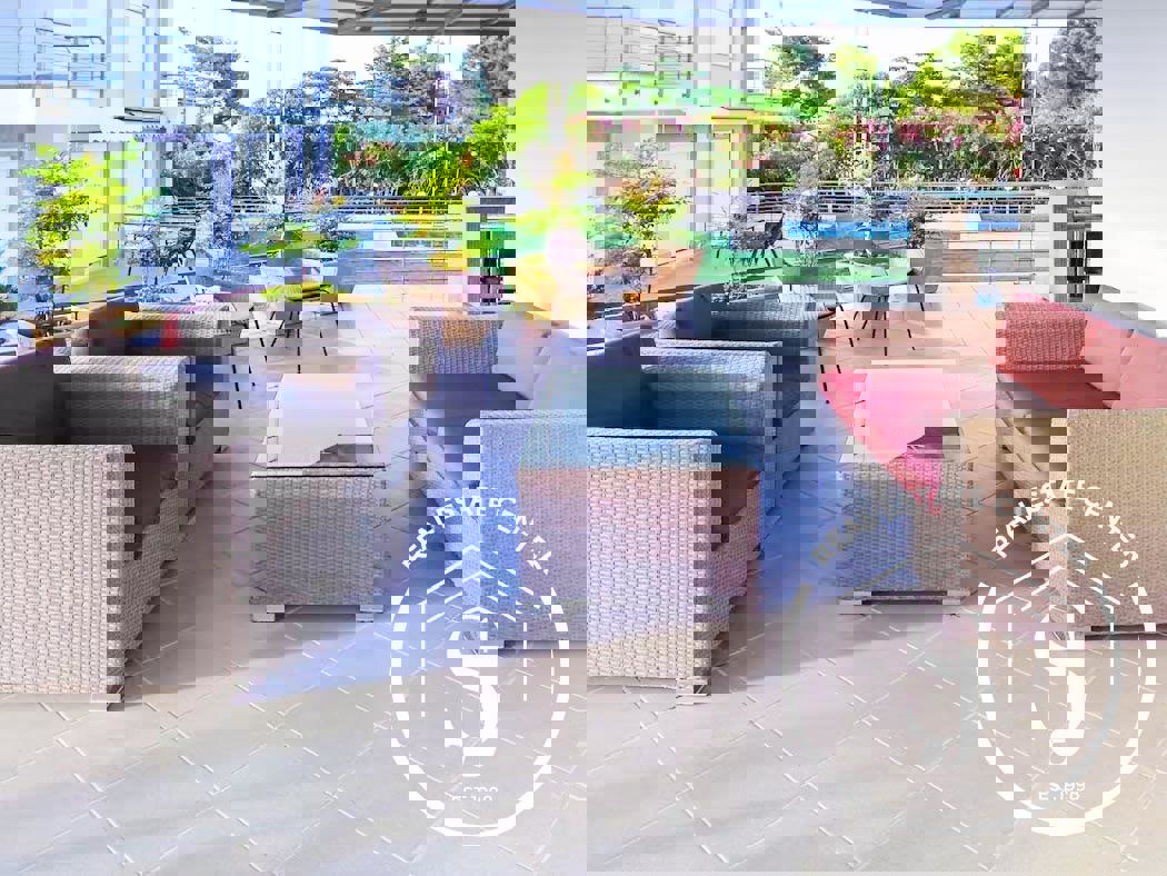 Set on a private 300 sq.m. garden, the property also enjoys access to a beautifully landscaped shared garden and a sparkling communal swimming pool. Originally built in 2009 and fully renovated in 2019, the home is offered fully furnished and equipped, ready for immediate occupancy.