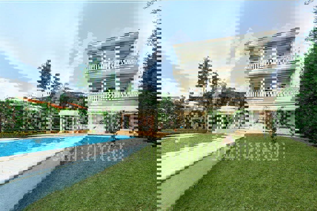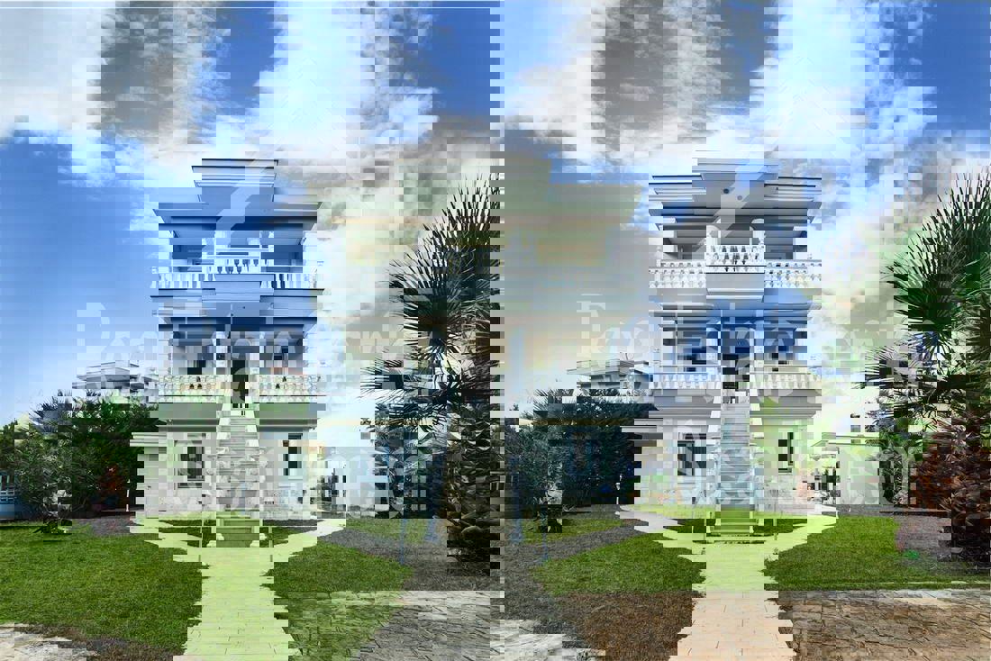 Unsurpassed luxury!!! An exquisite blend of classic style with modern world conveniences. Fully fenced property with gate for ultimate privacy and security. With a total of 300 sq meters, the home offers a separate apartment of 100 meters on the ground level and the maisonette on the top level. In total, the villa boasts 5 bedrooms, 4 baths, 2 kitchens, storage rooms, 2 lounges with walk-out to the large oversized patios, a spa, an enclosed garage for 2 vehicles, and many other advantages. The gated garden offers a private swimming pool, outdoor kitchen with BBQ, and kiosk for outdoor entertaining during the summer. Many extras with the home include a private heating system, wood-burning fireplace, upgrade window fittings, A/C inverters, security door, security system, luxury furniture, all electrical appliances, and many other upgrades. Walk to the seaside and the best beaches of Halkidiki is only 250 meters, and shopping and other amenities are about a 5-minute drive to the nearest town of PEFKOHORI. Built in 2008 the home offers a purchase tax of only 3%. To view or to ask any questions call for your appointment today..